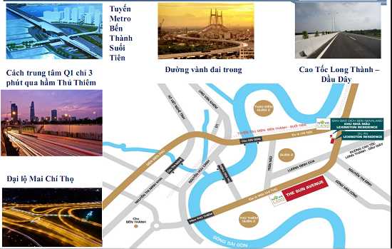 Tọa lạc ngay giao lộ Mai Chí Thọ và Cao Tốc - TP.HCM - Long thành - Dầu giây. Dự án căn hộ The Sun Avenue với 8 Block trãi dài 700m mặt tiền đường ĐL Mai Chí Thọ, Quận 2 (Đại lộ Đông Tây). Là dự án thứ hai được Novaland triển khai trên trục Đại Lộ Đông Tây, tuyến đường chính kết nối trung tâm quận 1 với khu đô thị mới Thủ Thiêm, Quận 2. Đây là dự án có quy mô tầm cỡ, chất lượng dịch vụ tiện ích cao cấp vượt trội.